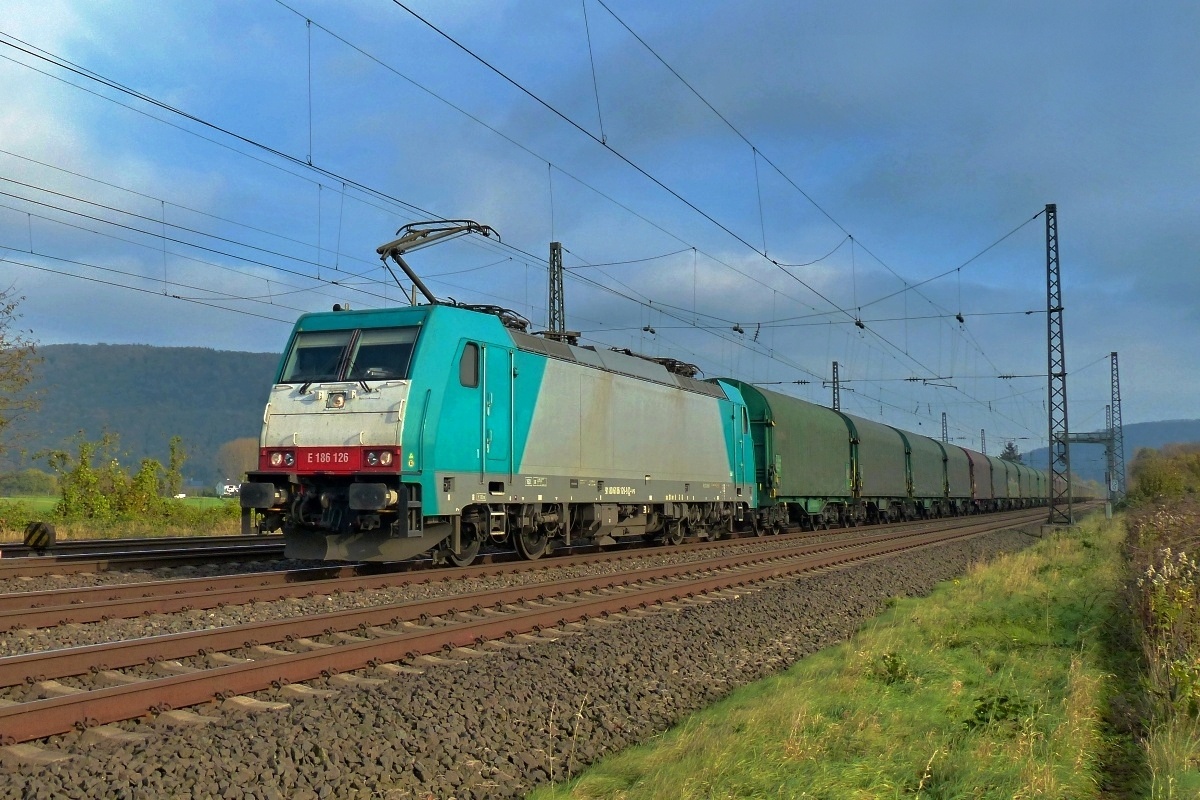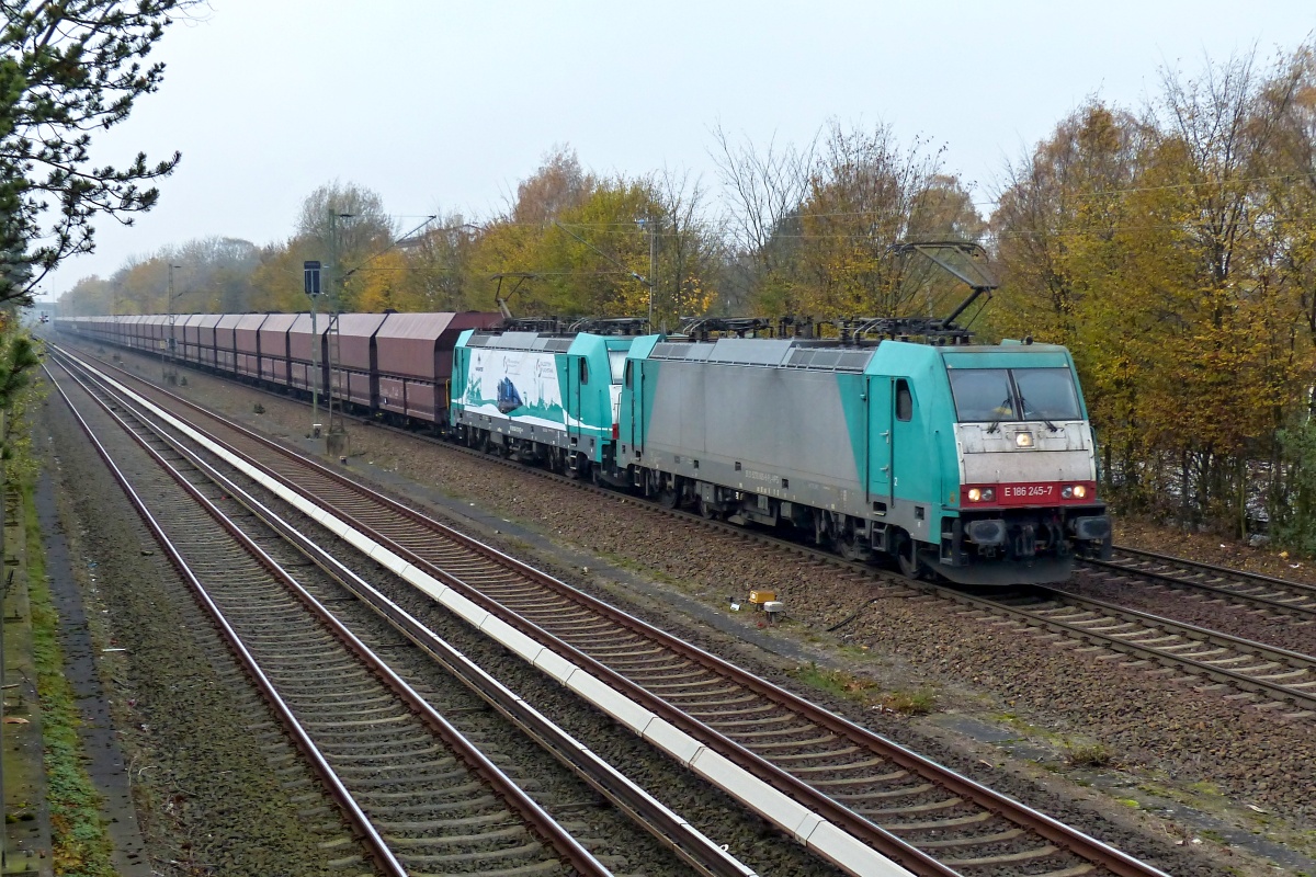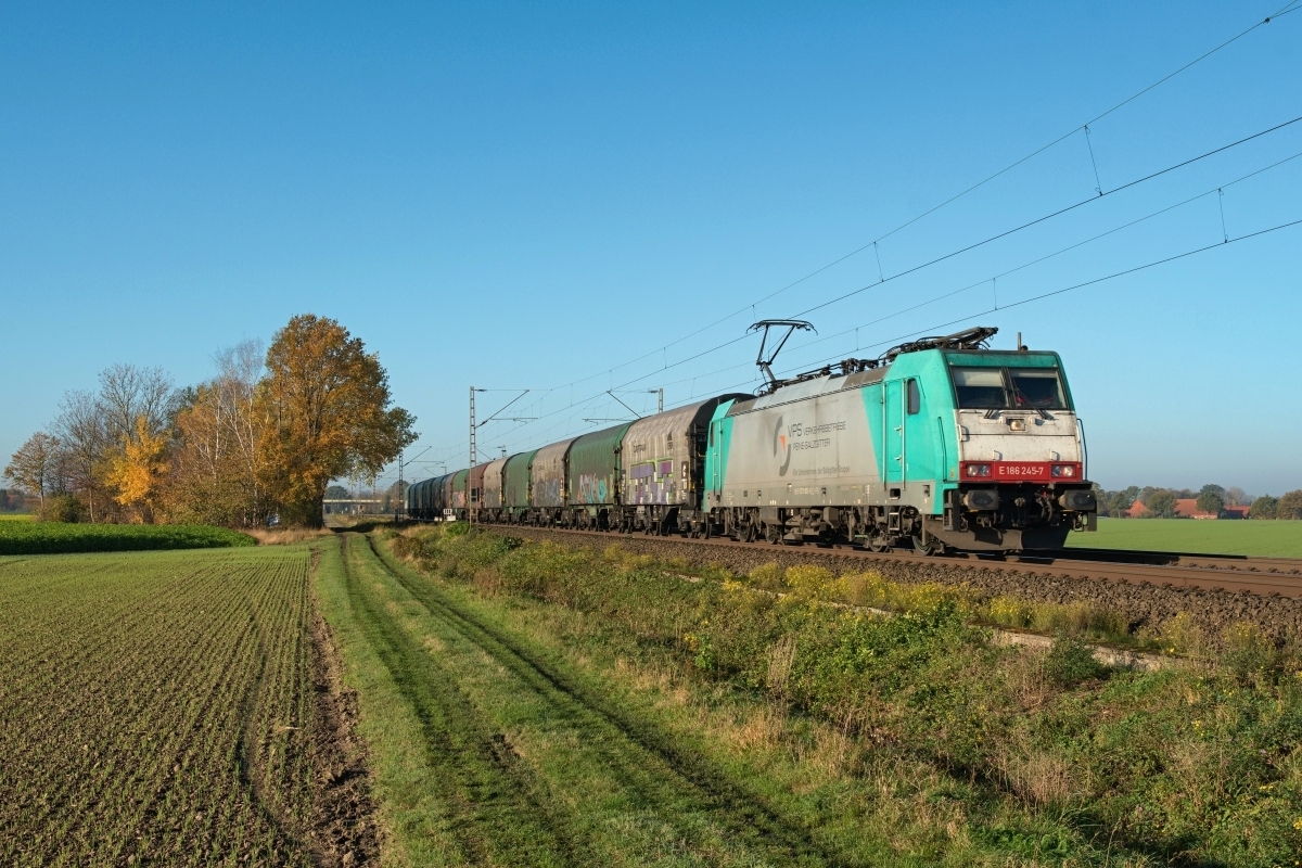 Dto. 186 245-7 am 05.11.2020 bei Lindhorst (HLH) Vornhagen mit dem DGS