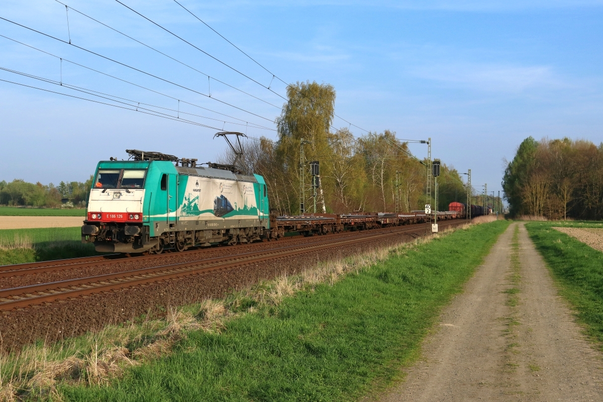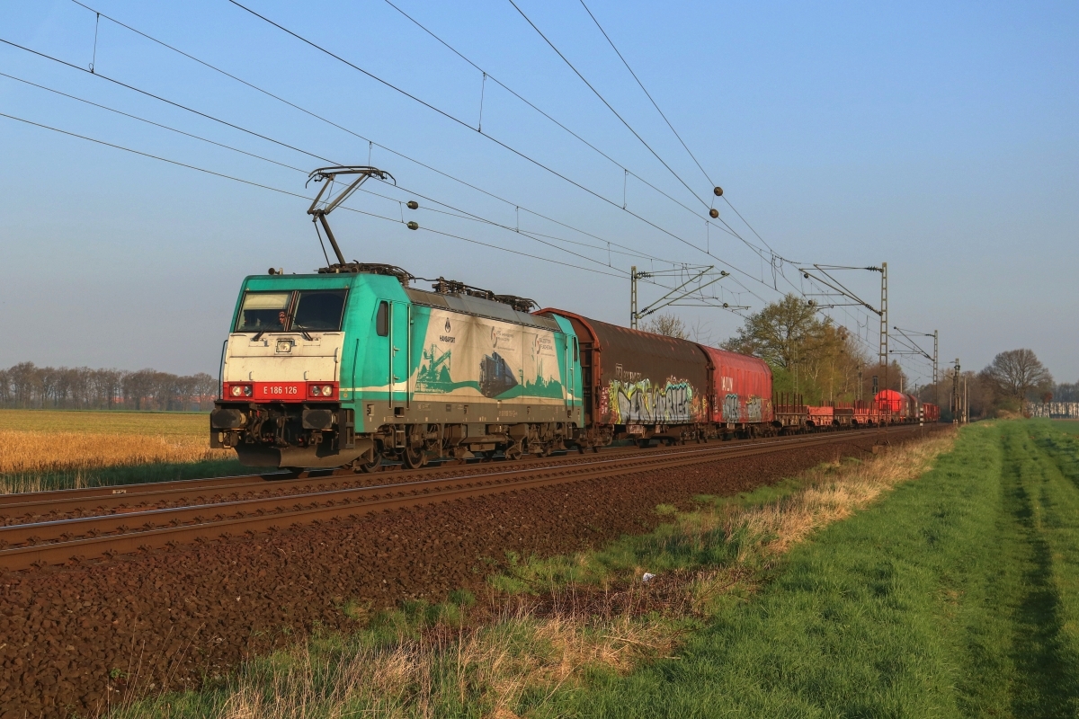 Dto. 186 149-9 am 21.04.2021 bei Poggenhagen (HPOG) mit 186 131-9 und