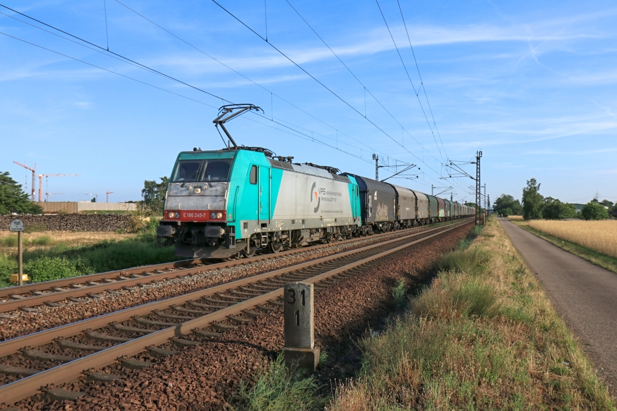 Dto. 186 245-7 am 16.07.2019. Hier war die Lok bei Waghäusel (RWG)