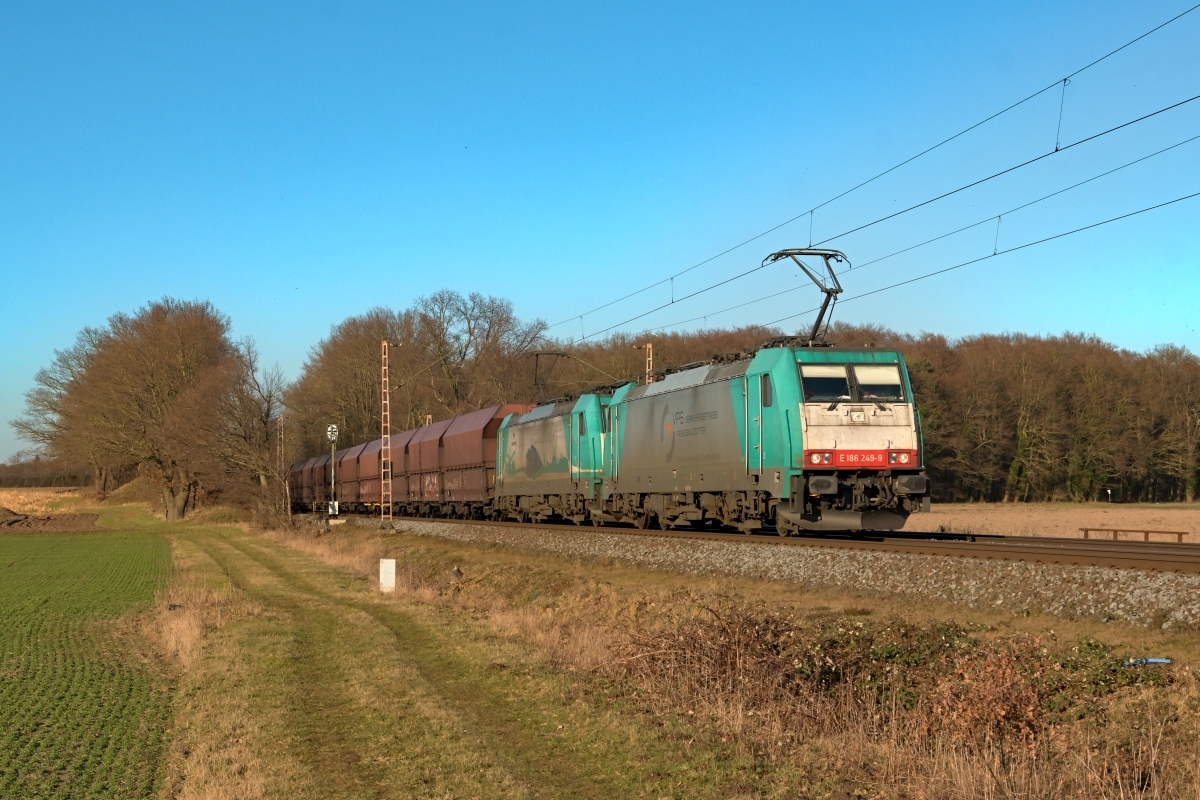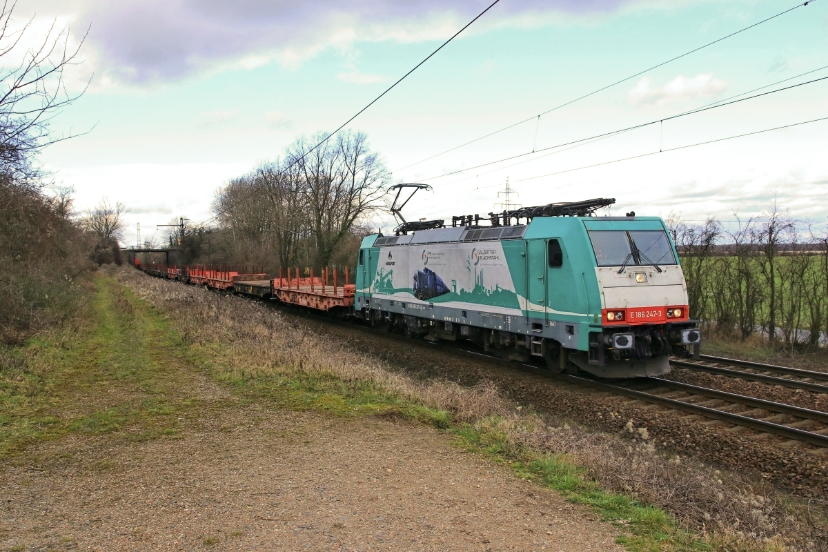 Dto. 186 247-3 am 07.03.2019 bei Ahlten. Hier war die Lok mit