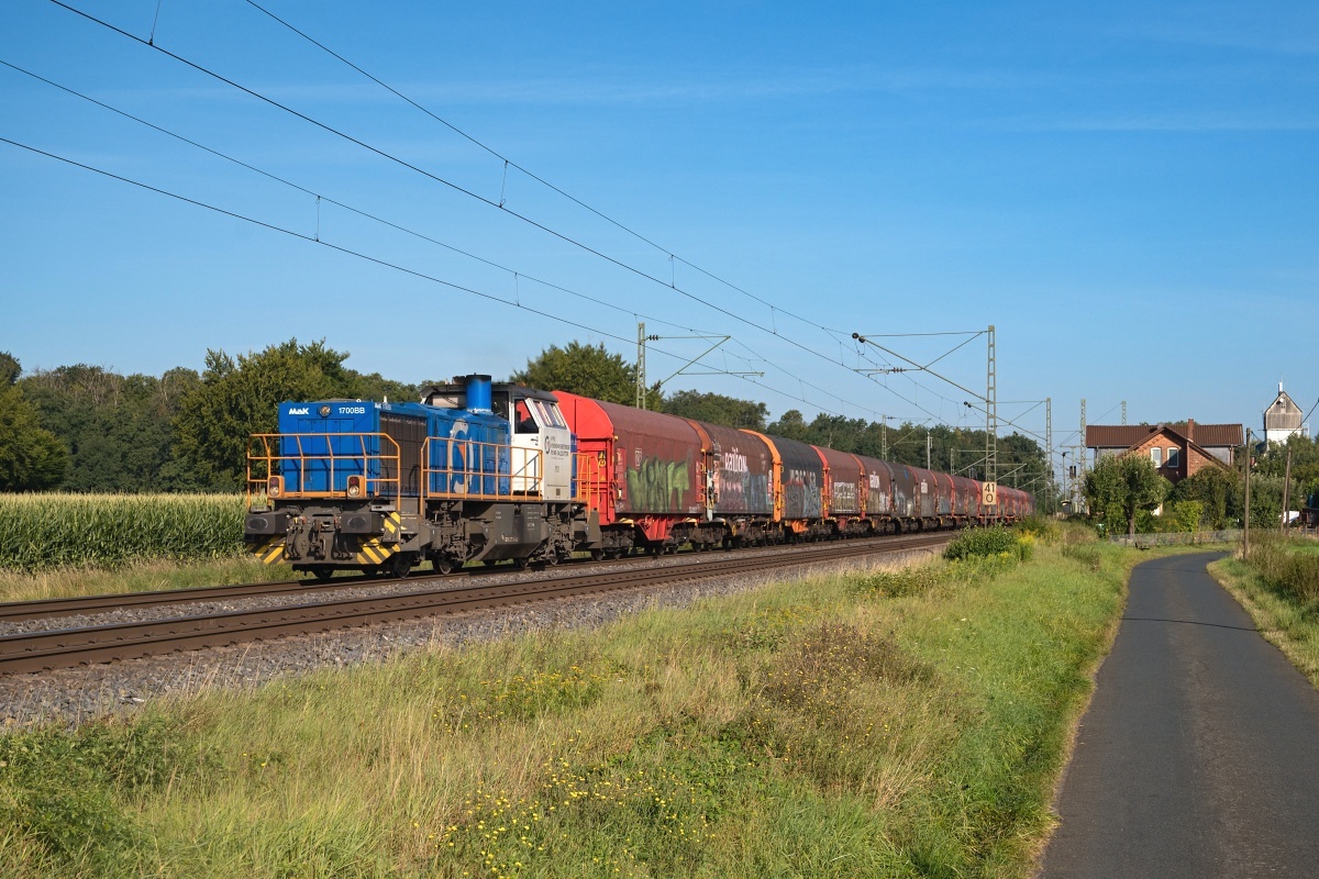 Am 07.08.2017 konnte die Lok bei einer Lz-Fahrt mit DB 187 084-9 "am Haken" in Banteln
