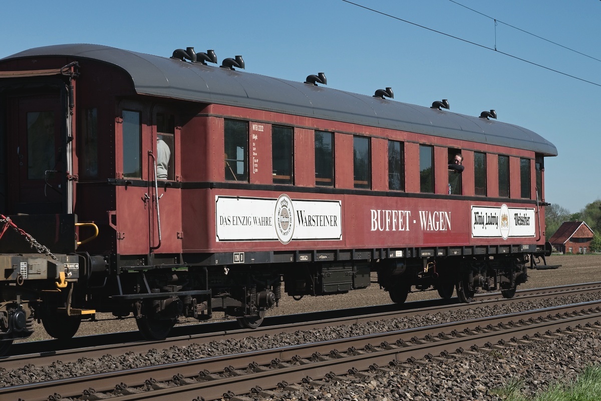Personenwagen handelt es sich um den Buffet-Wagen B4yk WTB 2222 mit Werbung