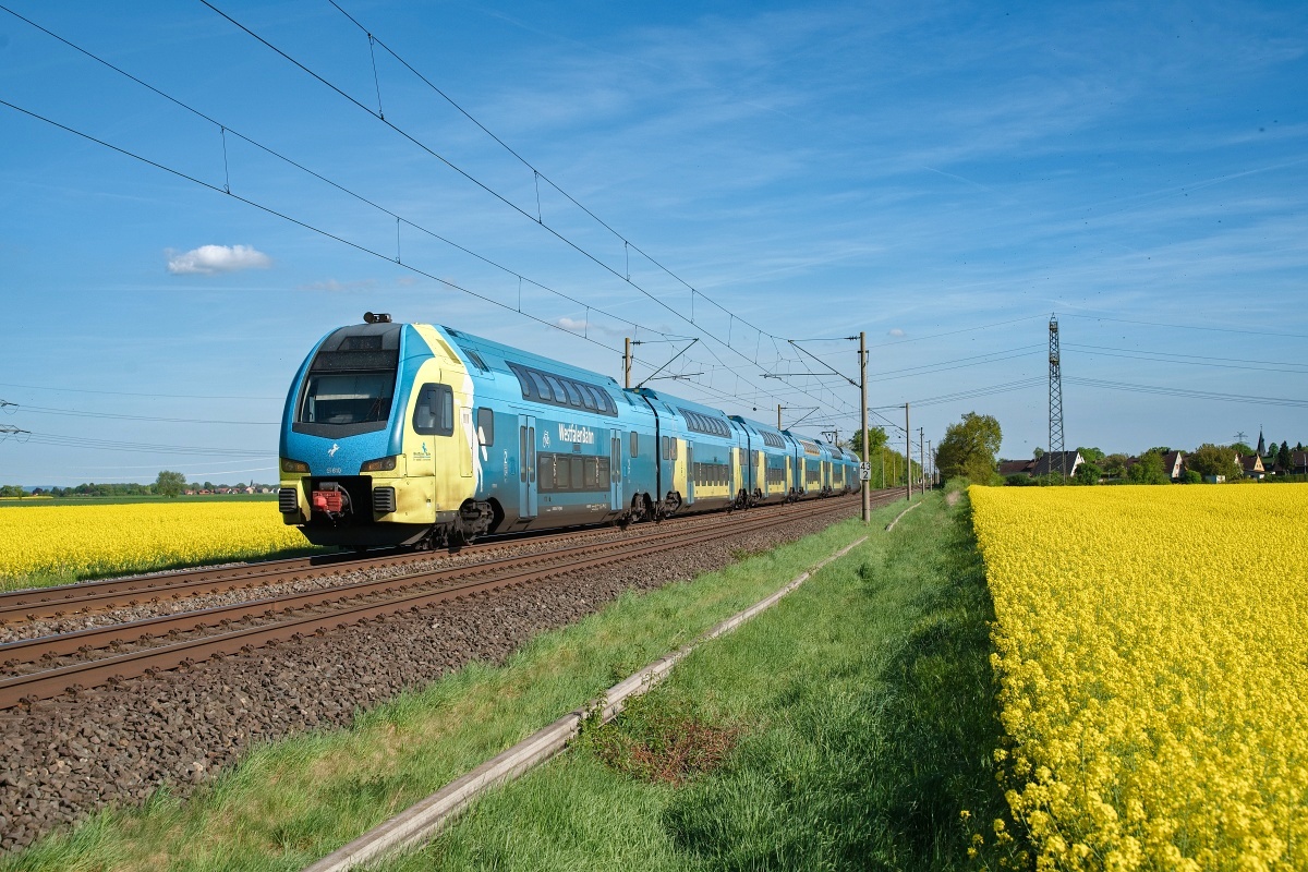 am 21.03.2025 bei Wierthe als RE60 (95775) von Rheine nach Braunschweig