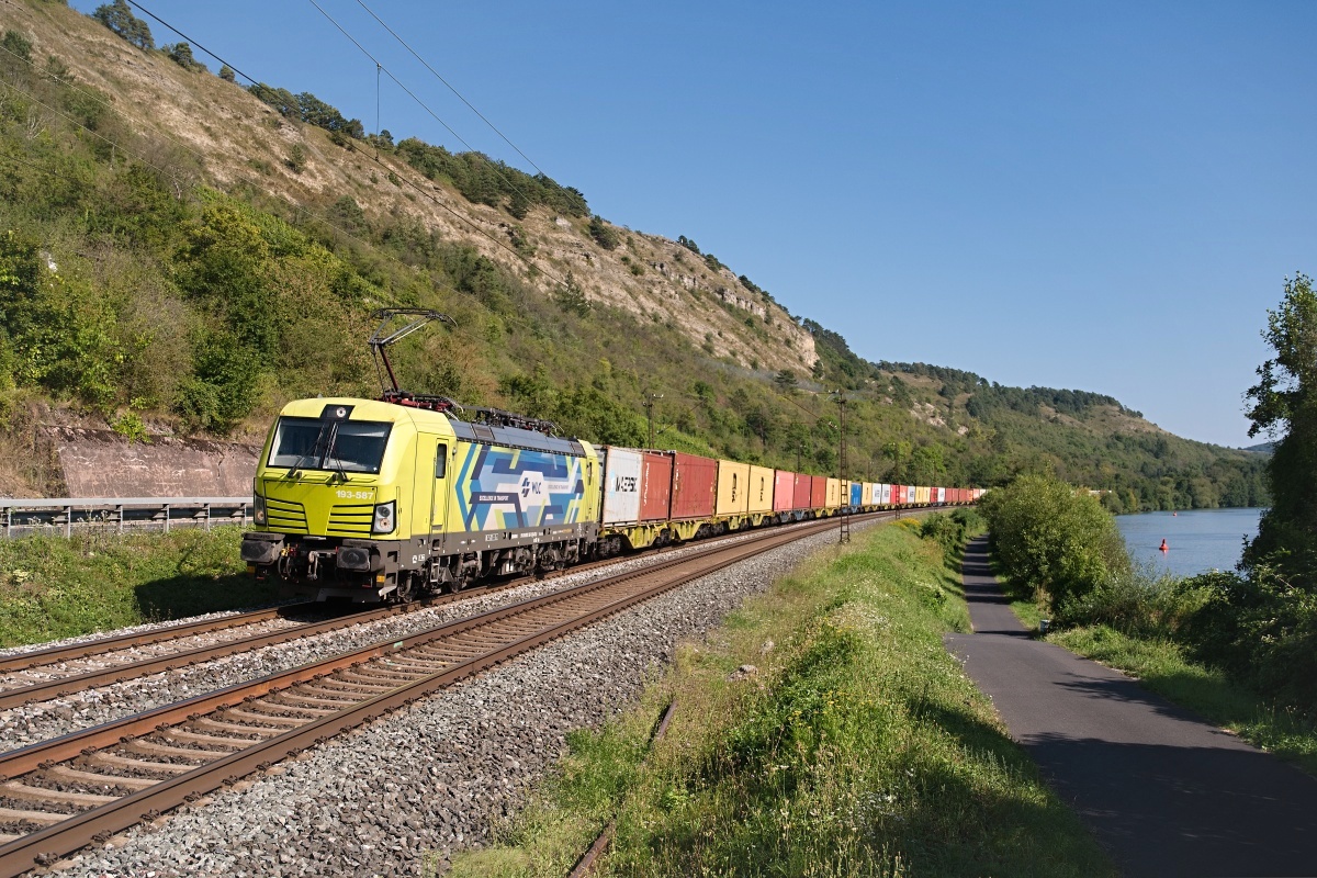 Dto. 193 223-5 am 23.08.2024 bei Wernfeld (NWFD) mit einem Containerzug Rtg.
