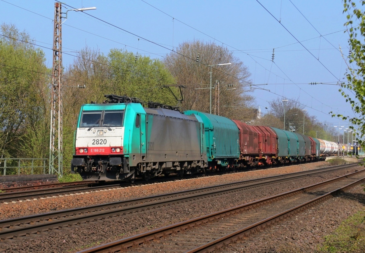 Dto. 186 220-0 am 26.04.2025 bei Lindhorst (HLH) Vornhagen mit einem