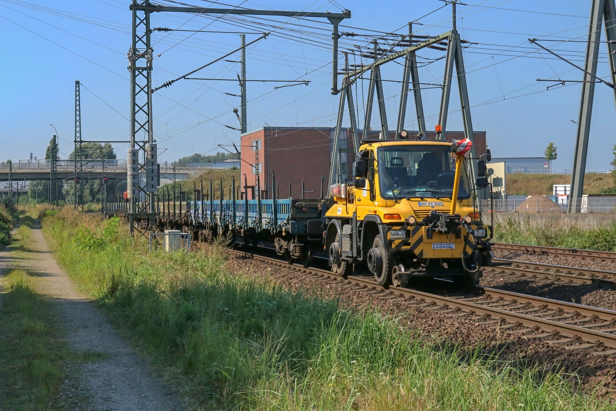 ZAGRO Kleinwagen 228 - Zweiwegefahrzeug am 09.08.2016 im Einsatz als Rangier-Unimog zwischen Waltershof und dem Rbf "Alte Süderelbe"