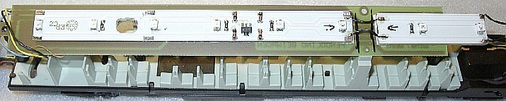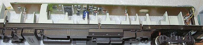 Triebwagen hat im Innern jeweils unterm Dach eine lange Platine