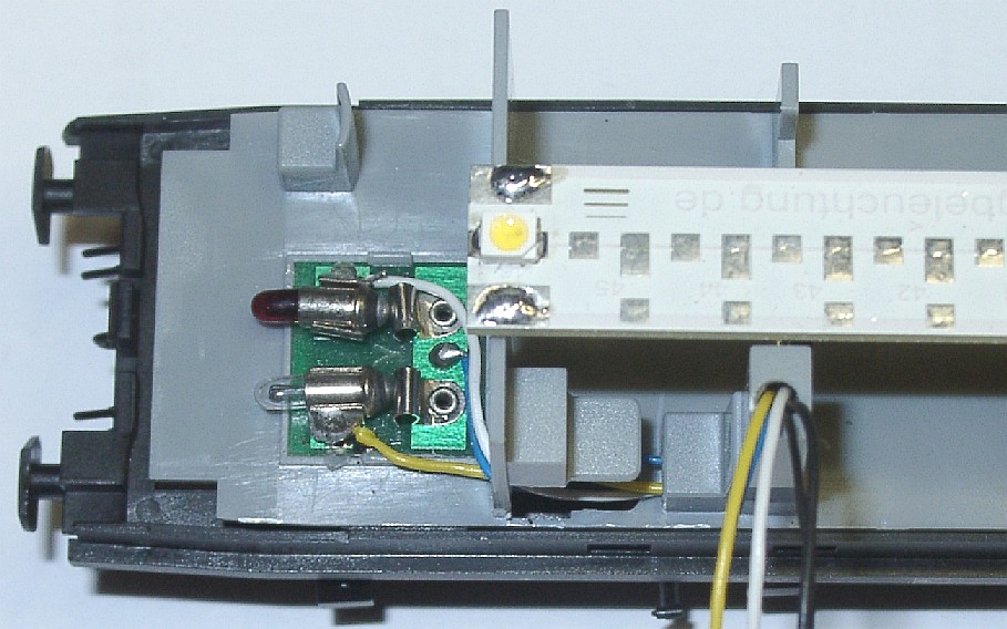 Folgend ein paar Bilder zum Einbau. Auch in diesen Wagen strahlen die LED-Platinen